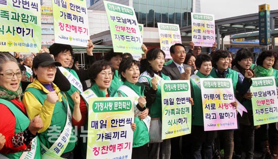 대전역 서광장에서 회원 50여명 참여..행복한 가정을 위한 서약 등 ▲ 새마을동구지회, 가정사랑 문화확산 캠페인 대전 동구 새마을협의회 및 부녀회원 50여명은 29일 대전역 서광장에서 가정사랑 문화확산 홍보를 위한 가두 캠페인을 전개하고 행복한 가정을 위한 서약운동 등을 전개했다. 저작권자 © 충청뉴스 무단전재 및 재배포 금지 문요나 기자 다른기사 보기 기사가 마음에 드셨나요? 충청뉴스 좋은 기사 후원하기 1,000원 3,000원 5,000원 10,000원 30,000원 50,000원 직접입력 비회원 약관동의하기 ※ 소중한 후원금은 더 좋은 기사를 만드는데 쓰겠습니다.