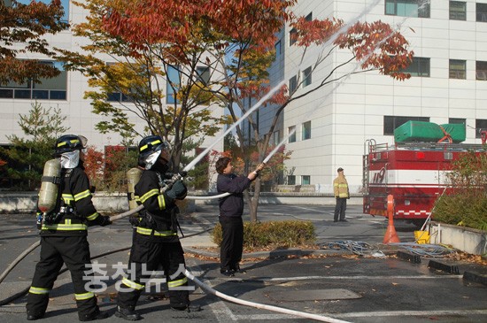 훈련에는 자위소방대원 100여명, 소방대원 10명 등 약 110여명이 참가한 가운데 화재발생 시나리오에 따라 분대별 임무를 수행하는 방식으로 상황전파,피난유도,초기진화,합동소화 등 체계적인 훈련이 이루어졌다.