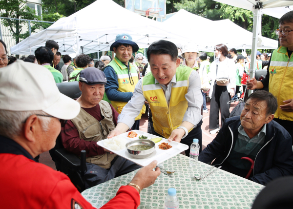 [충청뉴스 박영환 기자] 대전 서구(구청장 서철모) 자원봉사센터(이사장 손선락)는 지난 17일 월평2동 주공3단지아파트에서 지역 거주 어르신 400여 명을 대상으로 ‘참! 좋은 사랑의 밥차’ 무료 급식 자원봉사 활동을 펼쳤다.
