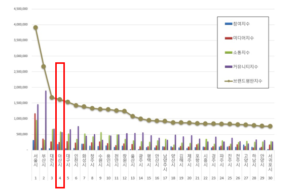 아산시 도시브랜드 “상승 또 상승”...역대 최고 ‘4위’