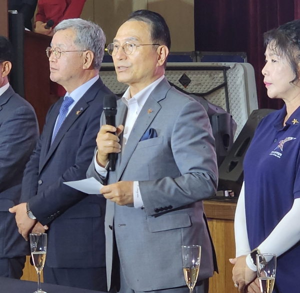 박상돈 천안시장(가운데)은 26일 ‘2024 천안 K-컬처 박람회’ 폐막 리셉션에서 “박람회가 국민의 자부심으로 성장할 수 있도록 기초를 닦겠다”고 말했다./사진=박동혁 기자