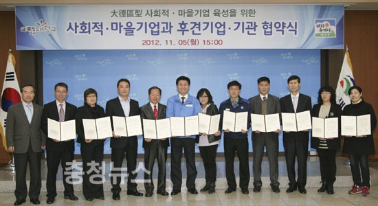 대전광역시 대덕구(구청장 정용기)는 5일 구청 중의실에서 사회적 기업 및 마을기업의 자립기반 강화를 위한 ‘사회적·마을기업과 후견기업·기관 간 결연 협약식’을 개최했다.