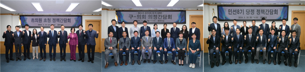 앞서, 중구는 24일 시의원(박주화, 김선광, 민경배) 초청 정책간담회와 27일 구의원 전체 간담회를 갖고 지역 현안문제 해결과 예산지원 방안을 논의하는 등 소통과 초당적 협치의 첫 발걸음을 뗐다.