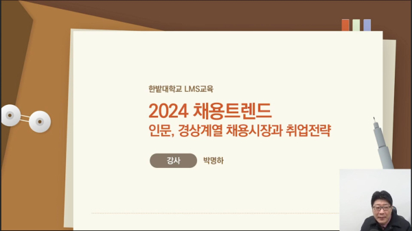 지난 4월 1일부터 5월 31일까지 두 달 간 운영한 이번 취업 특강은 국립한밭대 진로설계 교과목과 연계했으며, △공학계열 △정보기술(IT)계열 △건설·환경계열 △인문·경상계열로 나누어 각 계열에서 요구하는 직무 필수지식을 안내하고 분야별 특성을 고려하여 체계적인 취업계획을 수립할 수 있도록 했다.
