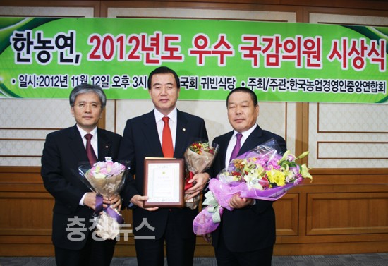 새누리당 홍문표 국회의원(충남 예산·홍성)이 (사)한국농업경영인중앙연합회(회장 김준봉)으로부터 2012년도 국정감사 우수의원으로 선정됐다.