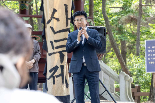 최충규 대덕구청장이 계족산 무제 행사에 앞서 인사말을 전하고 있다