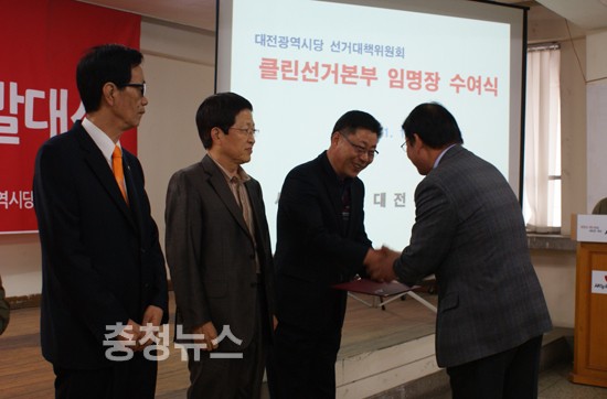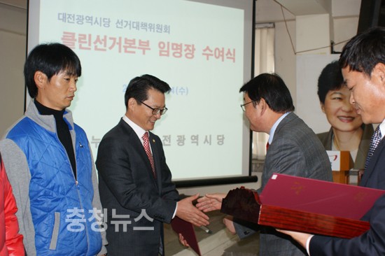 제 19대 대통령 선거를 앞두고 공정 선거를 다짐하는 새누리당 선거대책위원회(클린선거본부장 나경수) ‘클린선거본부 임명장 수여식’이 14일 오후 대전시당에서 열렸다.