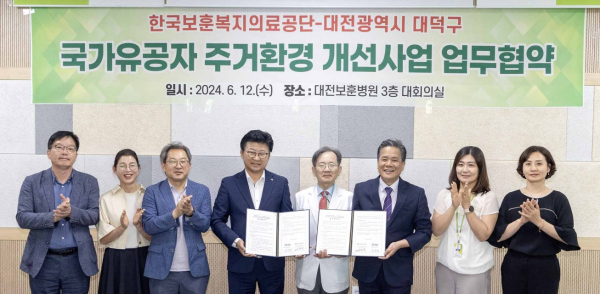 [충청뉴스 박영환 기자] 대전 대덕구(구청장 최충규)가 12일, 국가유공자의 주거환경을 개선하기 위해 한국보훈복지의료공단과 업무협약을 체결했다고 밝혔다.