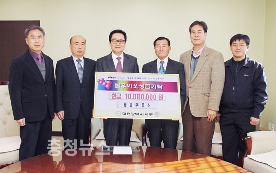 ▲ 대전 서구 평촌주유소로부터 따뜻한 이웃돕기 성금 1천만원 기탁받았다.