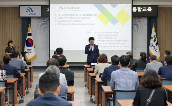 [충청뉴스 박영환 기자] 대전 대덕구는 지난 24일 구청 대회의실에서 올바른 성인식과 성평등한 조직문화 조성을 위한 ‘2024년 상반기 고위직 대상 폭력예방통합교육’을 실시했다고 밝혔다.