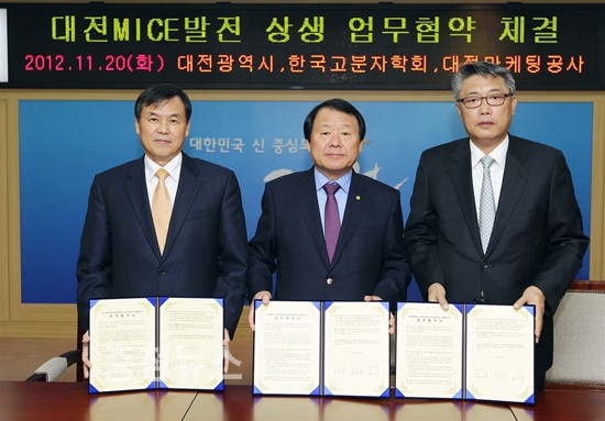 대전광역시는 20일 오전 11시 시청 중회의실에서 염홍철 대전시장, 장태현 한국고분자학회장, 김재경 한국고분자학회전무이사, 채훈 대전마케팅공사장 등 관계자 10여명이 참석한 가운데‘대전 MICE발전 상생 업무협약’을 체결했다.