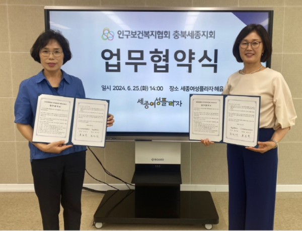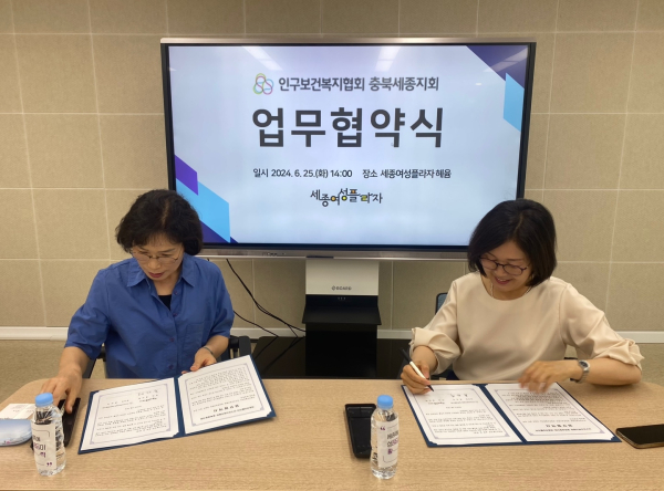 [충청뉴스 최형순 기자] 세종시사회서비스원(원장 김명희)에서 운영하는 세종여성플라자(대표 홍만희)는 25일 여성플라자 내 혜윰 강의실에서 인구보건복지협회 충북세종지회와 업무협약을 체결했다.