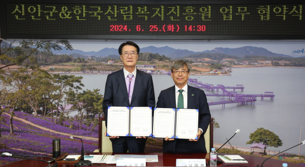 [충청뉴스 최형순 기자] 산림청 산하 공공기관인 한국산림복지진흥원(원장 남태헌)은 25일 신안군청에서 신안군(박우량 군수)과 산림복지를 통해 사회적 가치를 실현하기 위해 업무협약을 체결했다고 밝혔다.