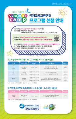 영어 캠프 프로그램 신청은 오는 7월 3일 22시까지 국제교육교류센터 누리집(https://www.sje.go.kr/global_eduhub/main.do)에 접속 후 외국어 교육지원 → 프로그램 신청(학생 선택)에서 할 수 있으며, 모집인원 초과 시 대상자는 무작위 추첨으로 선정된다.