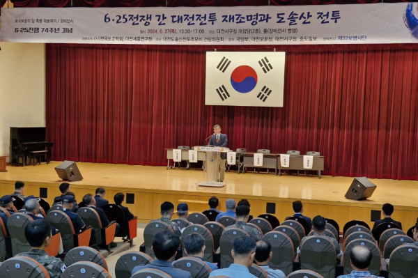 이날 학술회의에는 김정훈 한국보훈학회 부회장, 김영진 대전세종연구원장, 서철모 대전서구청장, 전명자 대전서구의회 의장을 비롯해 제32사단 장병 등 관계자 100여명이 참석했다.