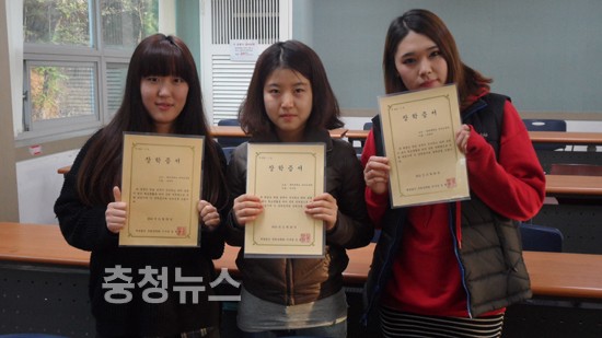 학업 등에서 학우들에게 모범이 돼온 이 학과의 이수연, 김영애, 피윤미 등 3명의 학생은 11월 22일 오후 4시 교내 인문사회관 307호에서 선원장학회 김황년 이사장으로부터 각각 100만원씩의 장학금을 받았다.