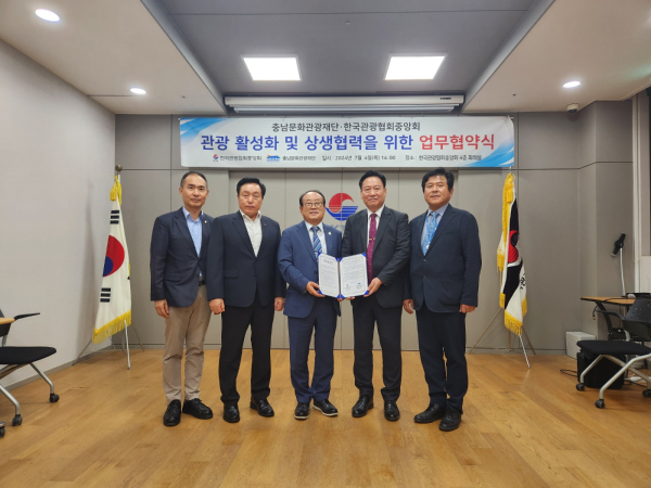 [충청뉴스 권상재 기자] 충남문화관광재단과 한국관광협회중앙회는 충남의 지역관광 경쟁력 강화를 위해 함께 나아가기로 했다.