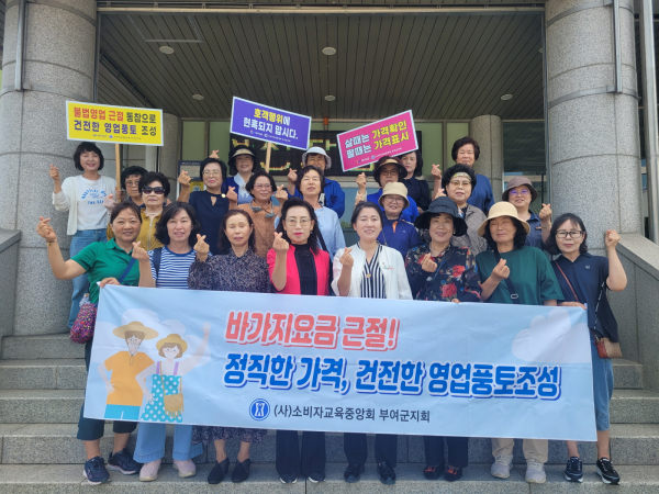 지난 4일 부여군과 소비자교육중앙회 부여군지회 회원들은 서동연꽃축제장인 궁남지 주변 상점을 방문해 바가지요금 근절 및 가격표시제 준수 등을 홍보했다.