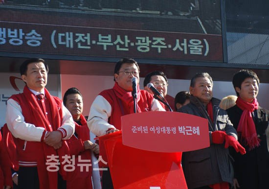 박 후보는 “대한민국의 최초 여성대통령이 된다면 우리 정치의 놀라운 쇄신과 변화가 시작될 것이라며 권력투쟁의 정치에서 민생중심의 생활중심정치로 바뀌게 될 것이다.”, “책임 있는 변화로 대한민국을 바꾸고 국민행복시대를 열겠다”고 약속했다. 이에 앞서 이회창 전 자유선진당 총재는 대전 시민들에게 박근혜 후보 지지를 호소했다.
