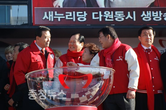 금일 이 자리에는 이종호 한국노총 대전지역본부 의장, 유남규·장윤창·김영호 전 국가대표 감독, 이회창 전 자유선진당 총재, 이완구 전 충남도지사, 이인제 중앙선대위 공동위원장, 김무성 총괄본부장, 박성효·이재선 대전공동선대위원장,이장우 중앙선대위 조직총괄부본부장, 민병주·김상민·이재영 의원이 함께했다.