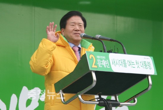 그는 "정권교체를 바라는 모든 국민은 하나다"라며 "안철수 후보 지지했던 분 심상정 후보 지지했던 분 새 정치 염원했던 모든 분들과 경제민주화 복지국가 그리고 한반도 평화를 바라는 모든 세력이 합쳐서 대통합 국민연대를 만들겠다"면서 "대전시민들이 함께 힘을 모아달라 단일화 과정의 입장차를 넘어서서 함께 손을 잡아 달라 민주당도 우리 국민들이 이제 그만하면 됐다고 할 때까지 바꾸고 쇄신하겠다"고 약속했다.