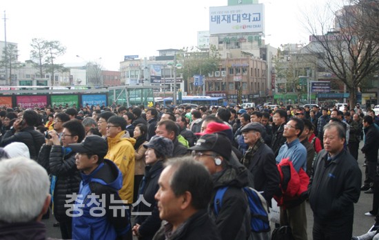 ▲문재인 후보를 대전역 행사장 앞에서 영접하는 관계자들