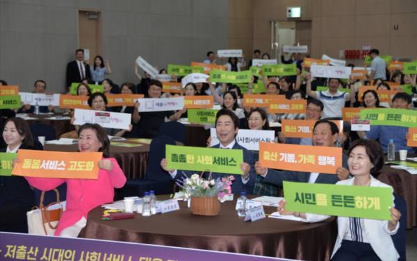 그러면서 "저출산 시대 사회서비스를 위해 자치단체와 기업, 학계와 언론, 정치권, 시민 등 우리 사회 모두가 이제는 함께 나서야 한다"고 호소했다.