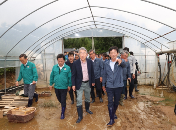 이어 강 회장은 “기록적인 호우로 농업인의 삶의 터전과 농작물에 큰 피해를 입어 마음이 무겁다”라며 “신속한 피해복구를 위해 범농협 차원의 지원 역량을 결집해 나가겠다”고 밝혔다.