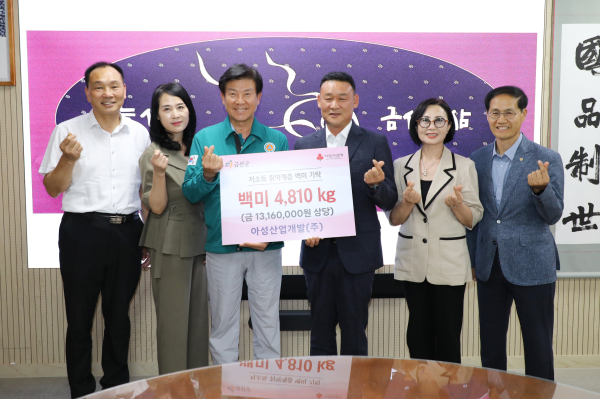 아성산업개발은 도움이 필요한 저소득 취약계층에 쓰이기를 바란다며 1316만 원 상당 백미 4.8t을 기탁했다.