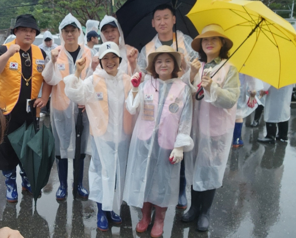 이날 수해복구 현장에는 협회 박이철 총재, 강도원 부총재, 양선희 지대위원장, 변규리 대전누리한밭회장 등 회원들이 봉사자로 나섰다.