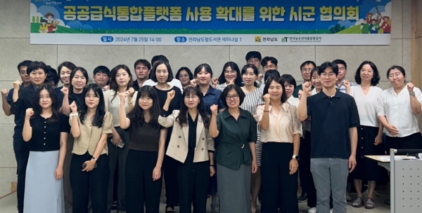 [충청뉴스 최형순 기자] 한국농수산식품유통공사(사장 김춘진)는 25일 전라남도 도립도서관에서 전라남도와 도내 22개 기초지자체가 함께 ‘공공급식통합플랫폼’을 통해 지역 우수 농수축산물의 공공급식 분야 공급 확대를 위한 ‘전라남도 공공급식 광역협의회’를 개최했다.