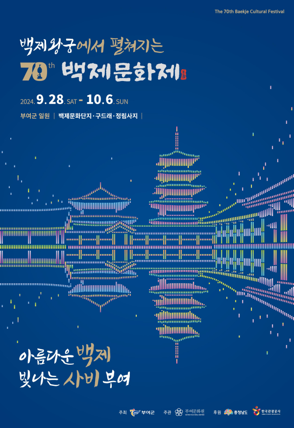 한편, 제70회 백제문화제는 '아름다운 백제, 빛나는 사비'라는 주제로 9월 28일(토)부터 10월 6일(일)까지 9일간 부여군 일원(백제문화단지, 구드래, 정림사지)에서 개최된다.