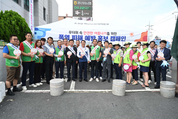 군민안전문화 확산과 폭염 피해 예방 홍보를 위해 실시한 양산쓰기 캠페인은 이용록 홍성군수와 지역자율방재단, 안전보안관, 관계공무원 등 40여 명이 참여한 가운데 농협하나로마트, 명동상가, 큰시장 일원에서 진행되었으며, 군민들에게 양산과 얼음물, 홍보 리플릿 등을 나누어주며 폭염 대비 행동요령을 적극 안내했다.