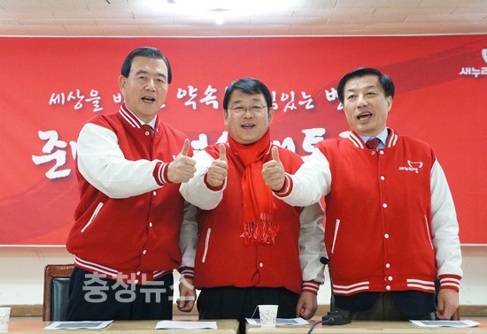 ▲ 홍문표 충남도당위원장, 박성효 대전시당위원장, 이재선 공동선대위원장