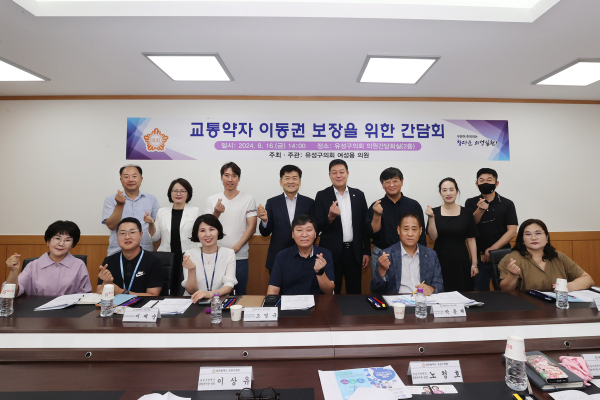 여성용 부의장은 “교통약자의 이동권은 그들의 삶의 질을 좌우하는 매우 중요한 문제”라며 “이번 간담회를 통해 수렴된 의견을 바탕으로 유성구가 교통약자들이 보다 편리하게 이동할 수 있는 환경을 조성하는데 선도적인 역할을 할 수 있도록 최선을 다하겠다”라고 밝혔다.