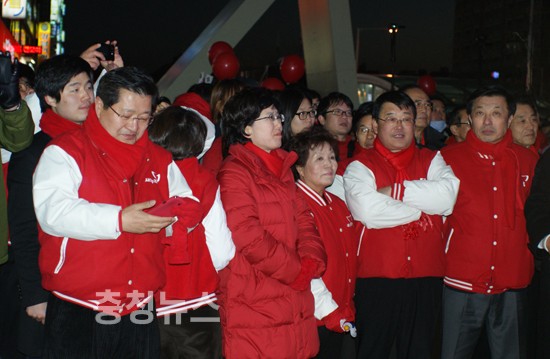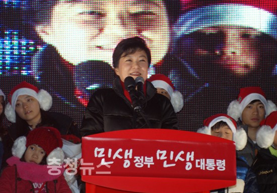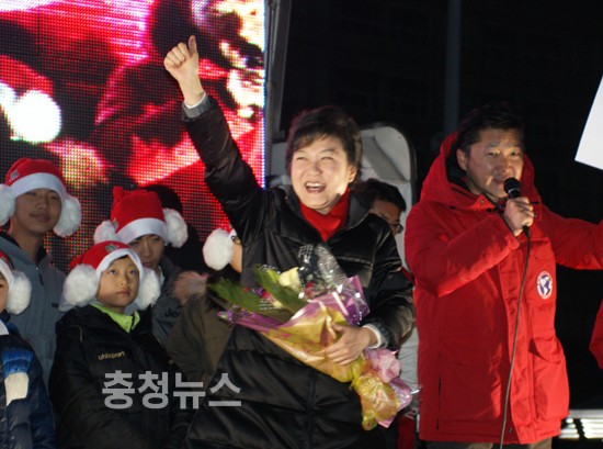 새누리당 박근혜 대통령후보는 "선거운동 시작 첫 날은 대전역에서 마지막 날은 유성 노은 지하철역에서 했다. 내일 대전·충청에서 압승할 수 있도록 힘을 모아달라"고 지지를 호소했다.
