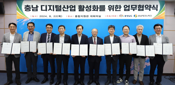 [충청뉴스 박동혁 기자] 충남테크노파크(충남TP)는 디지털산업을 주도하는 혁신 네트워크를 구성해 ‘충남 디지털산업 활성화를 위한 업무협약식’을 열었다고 23일 밝혔다.