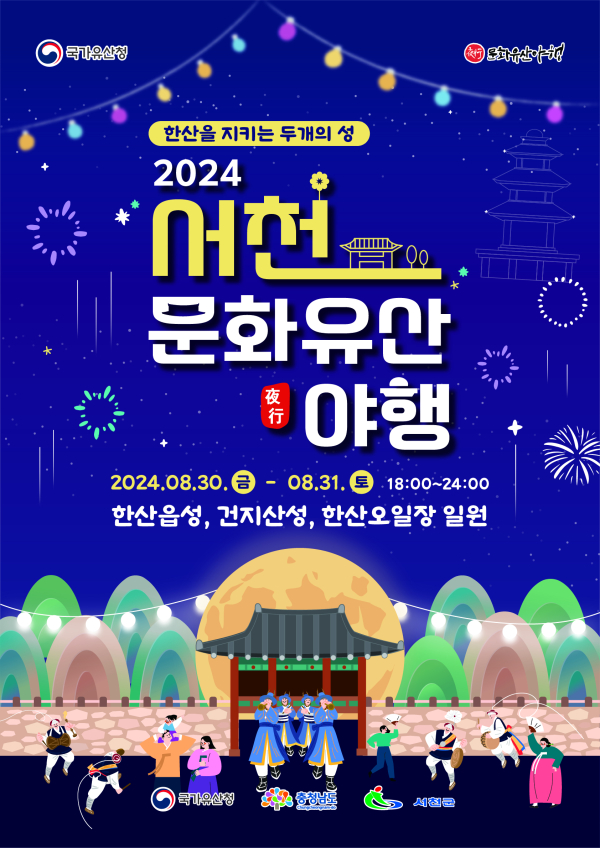[충청뉴스 조홍기 기자] ‘2024 서천 문화유산 야행’이 오는 30일부터 31일까지 2일간 ‘한산을 지키는 두 개의 성’이라는 주제로 한산읍성과 건지산성이 있는 한산면 지현리 일원에서 개최된다.