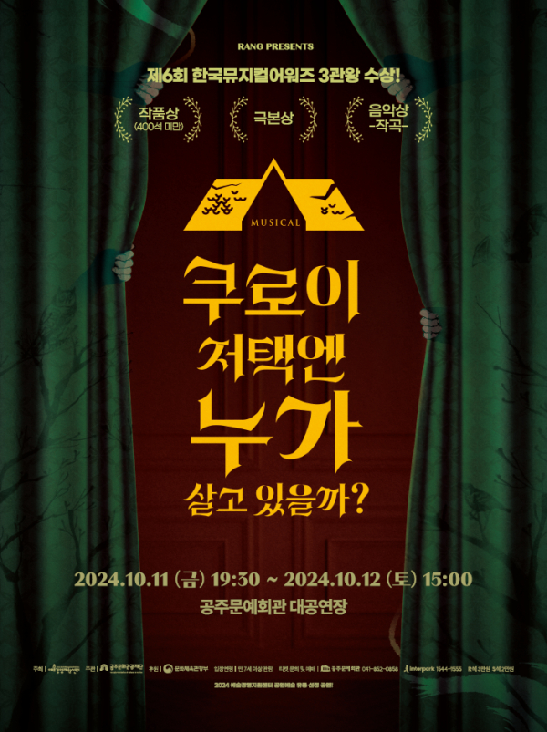 [충청뉴스 공주 = 조홍기 기자] (재)공주문화관광재단(대표이사 김지광)은 오는 10월 뮤지컬 ‘쿠로이 저택엔 누가 살고 있을까?’를 총 2회 선보인다.
