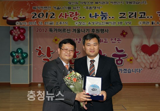 유성구 노인복지관은 ‘2012년 사랑나눔 그리고 감사’행사를 열어 나눔과 헌신을 실천하고 있는 자원봉사자와 후원자의 노고를 격려하고 감사의 마음을 전했으며 그동안 노인복지를 위해 노력해온 유성구의회 송대윤 사회도시위원장에게 감사패를 증정했다.