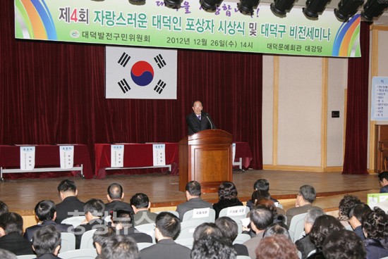 대덕발전구민위원회(회장 곽인상)에서는 지난 26일 대덕문예회관에서 회원 및 주민 150여명이 참석한 가운데 대덕구 비전세미나 및 제4회 자랑스러운 대덕인상 시상식을 개최했다.