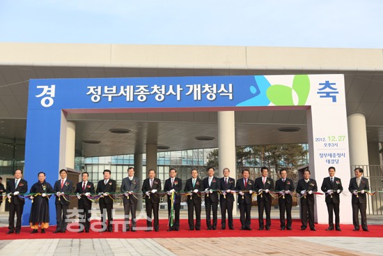 정부세종청사 시대의 개막을 기념하고, 이전하는 중앙행정기관을 홍보하기 위해 마련된 정부세종청사 개청식이 27일 세종청사 대강당에서 열렸다.