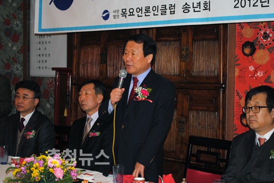 ▲ 목요언론인클럽 송년모임회원들이 경청하고 있다