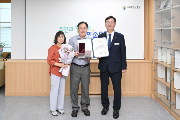 [충청뉴스 박영환 기자] 대전 중구는 지난 2일 구민사랑방에서 故김영관 참전용사의 유가족에게 화랑무공훈장을 전수했다고 밝혔다.