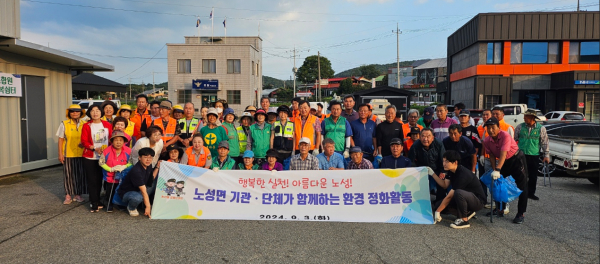 [충청뉴스 논산 = 조홍기 기자] 논산시 노성면(면장 정은숙) 관내 기관․단체들이 3일 면 일원 환경정화 활동에 구슬땀을 흘렸다.