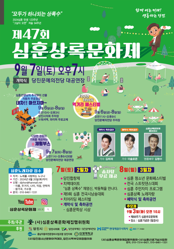 [충청뉴스 권상재 기자] 충남문화관광재단(이하 재단)은 충남 당진시에서 오는 6~8일간 열리는 ‘제47회 심훈상록문화제’에서 문화누리카드를 사용할 수 있다고 밝혔다.