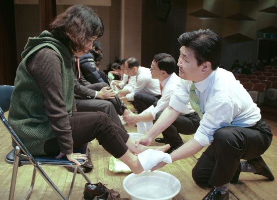 대덕구는 새해 2일 중리동 청소년수련관에서 열린 2013년 시무식에서 직원과 주민 500여명이 참석한 가운데 평생학습원 신영실 직원 등 6명의 팀원 발을 직접 씻어 주는 세족(洗足)행사를 가졌다.