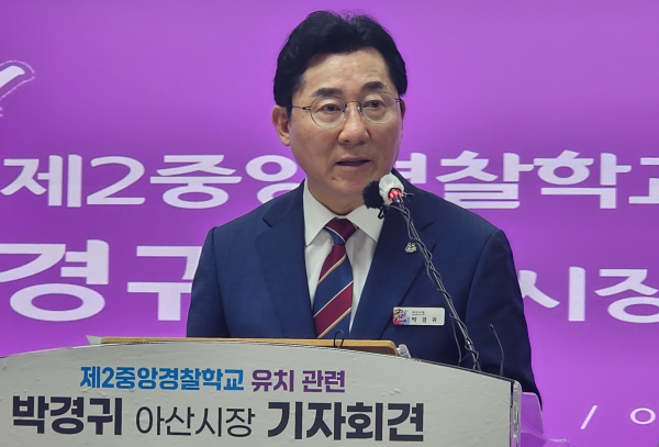 박 시장은 이날 아산시청 상황실에서 기자회견을 열고 경찰청 주관 ‘제2중앙경찰학교 설립 대상 부지 공모’에 참여했다고 밝혔다.