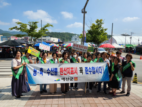 [충청뉴스 권상재 기자] 예산군은 지난 10일 예산(상설)시장에서 국립농산물품질관리원 충남지원 예산사무소, 소비자교육중앙회와 함께 올바른 농축수산물 원산지 표시 합동 캠페인을 펼쳤다.