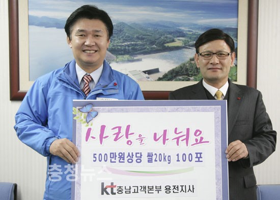 대덕구청 구민의 사랑방에서 500만원 상당의 쌀20kg 100포 전달 KT충남고객본부 용전지사(센터장 김동익)은 9일 오후1시 30분 대덕구청 구민의 사랑방에서 500만원 상당의 쌀20kg 100포를 대덕구에 전달했다. ▲ 대덕구 용전지사 KT 충남고객본부, 어려운 이웃 쌀지원 이날 기탁한 쌀 100포는 대덕구 관내의 복지사각지대에 있는 어려운 이웃에게 전달할 예정이며, KT용전지사는 지속적으로 어려운 이웃에게 따뜻한 사랑을 나누면서 나눔 문화 확산과 이웃사랑을 실천할 계획이다. 저작권자 © 충청뉴스 무단전재 및 재배포 금지 문요나 기자 다른기사 보기 기사가 마음에 드셨나요? 충청뉴스 좋은 기사 후원하기 1,000원 3,000원 5,000원 10,000원 30,000원 50,000원 직접입력 비회원 약관동의하기 ※ 소중한 후원금은 더 좋은 기사를 만드는데 쓰겠습니다.